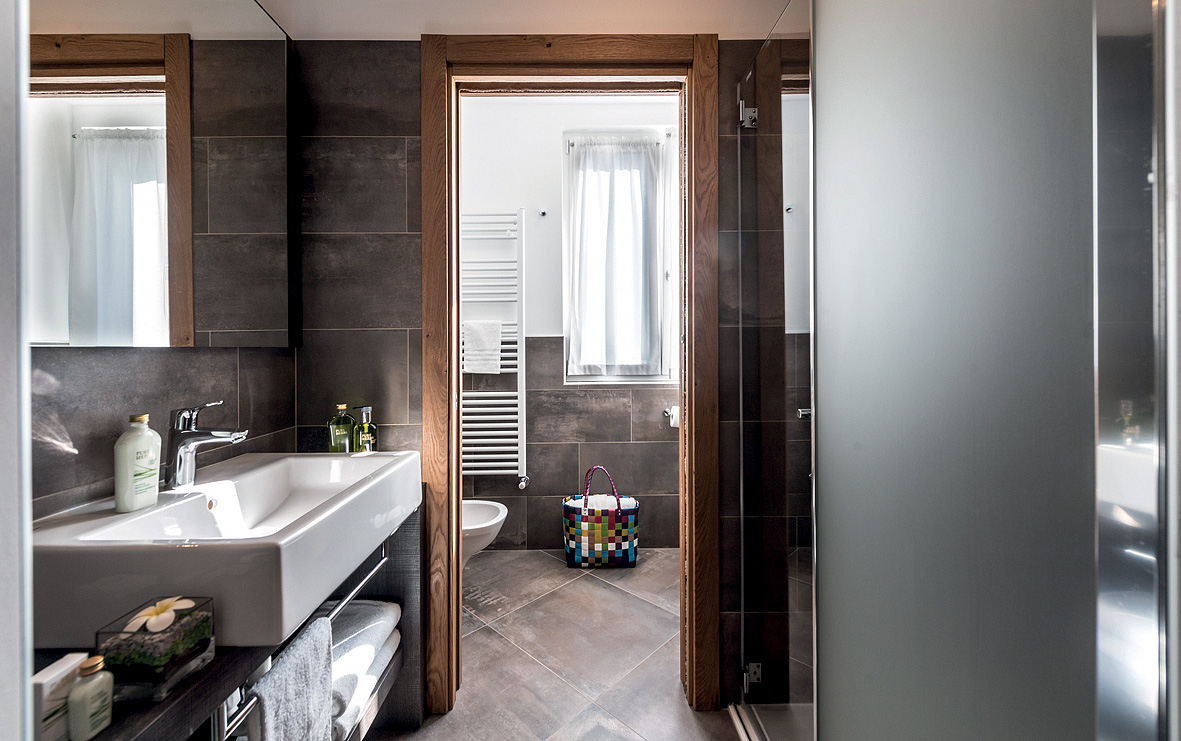 45 m² - pokoj s manželskou postelí či 2 samostatnými lůžky, 3. a 4. lůžko formou rozkládacího gauče či 2 samostatných lůžek, sociální zařízení, oddělené WC, šatna, privátní bio sauna
