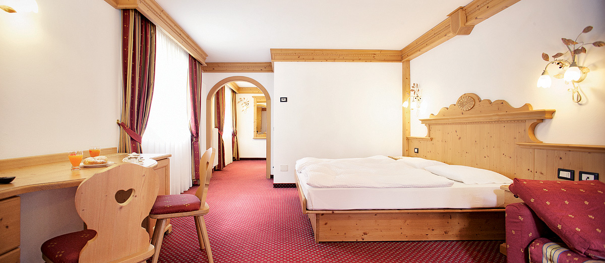 kapacita je tvořena 2 budovami vzdálenými od sebe 30 m přes ulici; v hlavní budově se nachází restaurace, wellness, všechny níže uvedené služby, ubytování typu B, pokoje Comfort 1/2/3 a Junior Suite 2/3/4; ubytování typu A je umístěno ve vedlejší Residenci Parco dello Stelvio odpovídající kategorii 3*