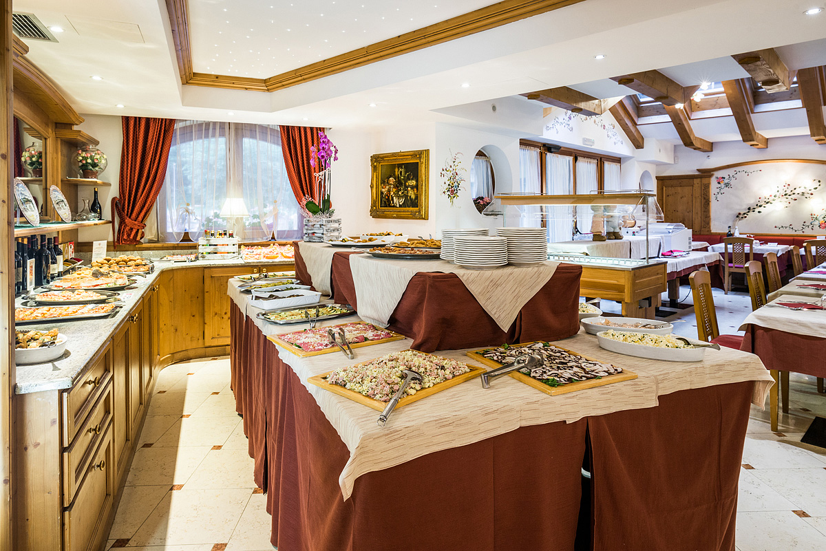 večeře - servírované menu s výběrem ze 2 teplých předkrmů a 2 hlavních jídel s přílohou, bufet studených předkrmů, servírovaný desert či ovoce, malý salátový bufet, nápoje za poplatek; 1x týdně typická večeře při svíčkách