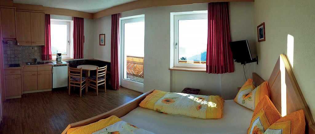 40 m² - skládá se ze 2 samostatných vzájemně nepropojených bytových jednotek na stejném podlaží: obývací pokoj s kuchyňským koutem, sociální zařízení s vanou, balkon; pokoj s manželskou postelí a 2 samostatnými lůžky, 2x sociální zařízení s vanou, balkon