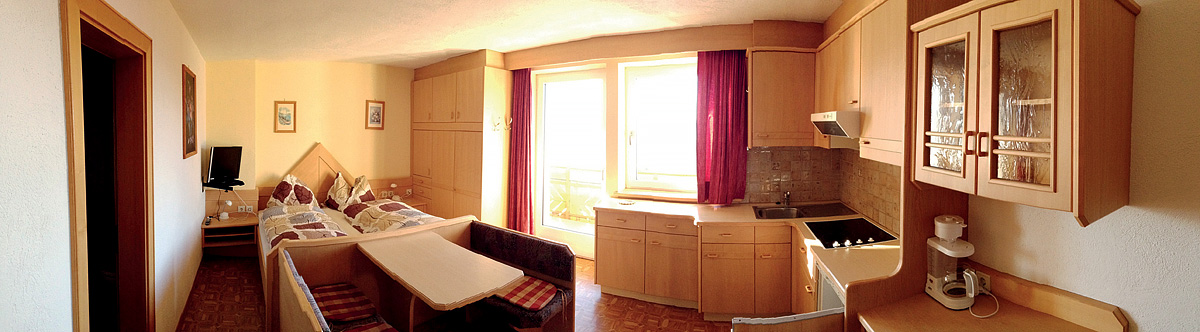 20 m² - obývací pokoj s kuchyňským koutem, manželskou postelí a 1 přistýlkou typu "šuplík" pro dítě do nedovršených 12 let, sociální zařízení, balkon