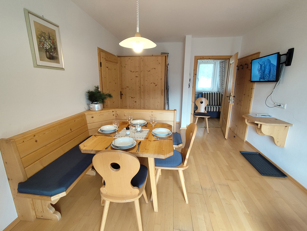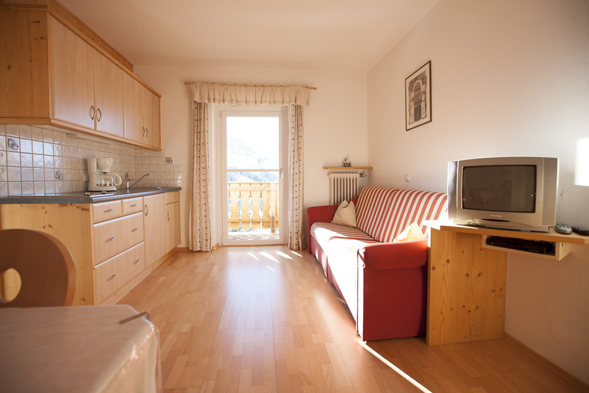 bilo Bergblick 2/3/4 B - ložnice s manželskou postelí, obývací pokoj s rozkládacím gaučem pro 2 osoby a kuchyňským koutem, sociální zařízení se sprchou, balkon