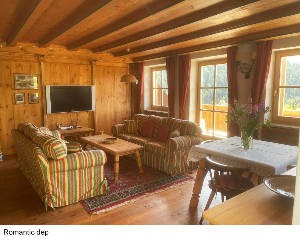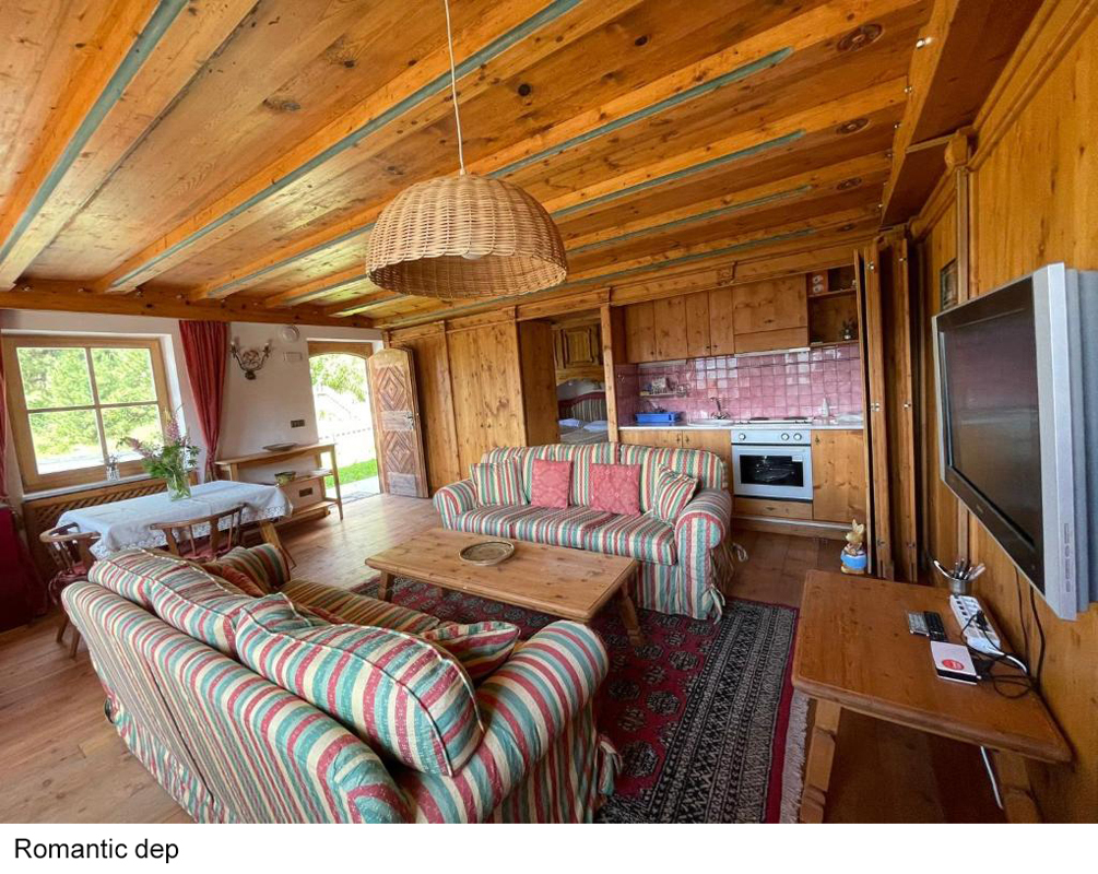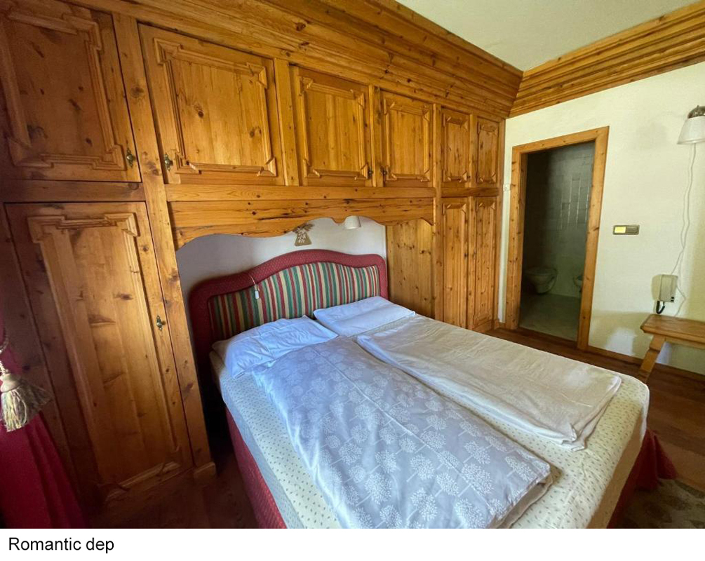 bilo Romantik dep. 2/3/4 - ložnice s manželskou postelí, obývací pokoj s rozkládacím gaučem pro 2 osoby a kuchyňským koutem, sociální zařízení se sprchou, balkon; apartmán se nachází v depandanci