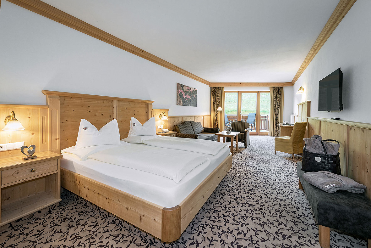 32 až 36 m² - pokoj s manželskou postelí a případně rozkládacím gaučem pro 1 až 2 osoby, sociální zařízení, oddělené WC, balkon s výhledem na hory
