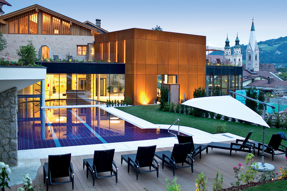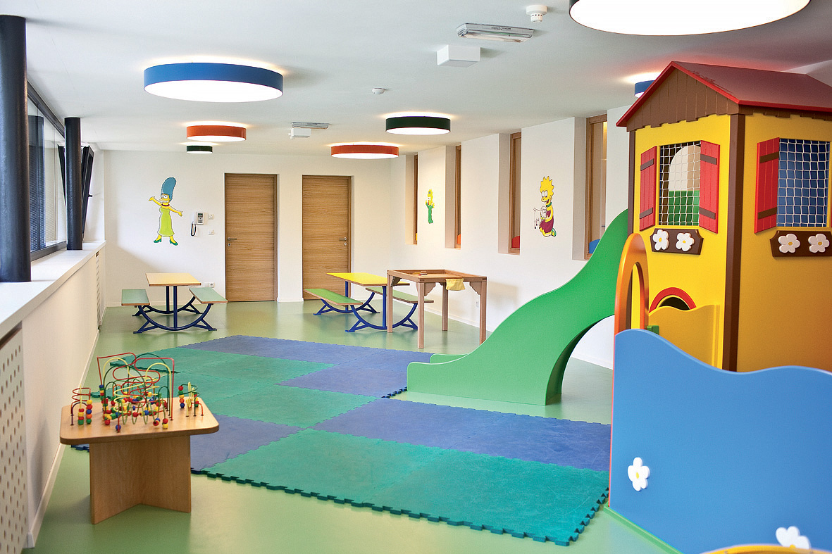 bazén 6 x 4 m s vířivkou až pro 6 osob a lehátky, velká posilovna (jen osoby od 16 let), lezecká stěna, stolní tenis, stolní fotbal; wellness GrünerBaum 4.800 m² v ceně pobytu (s výjimkou zkrácených pobytů pod 5 nocí v pokoji Standard) - bazén 4 x 4 m se 3 vířivými vanami, venkovní vyhřívaný bazén 8 x 4 m, dětský bazének s atrakcemi pro nejmenší, venkovní vířivka až pro 6 osob, finská sauna#, bio sauna#, aromatická pára#, horizontální solárium*, ledová lázeň, ledová mlha, relaxační koutek s lehátky, zahrada s lehátky, panoramatická prosklená terasa s lehátky, masáže*, kosmetické služby*; služby označené # mohou využívat děti až od 14 let; v rámci relaxačního centra jsou zdarma nabízeny též ručníky a voda