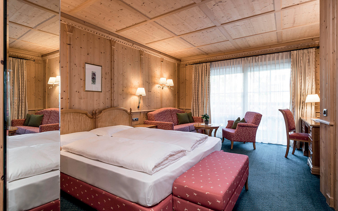 38 m² - pokoj s manželskou postelí a případně rozkládacím gaučem (pro osoby do 13 let) pro 1 či 2 osoby, sociální zařízení se sprchou a vanou, balkon; pokoje po kompletní renovaci vhodné i pro náročné klienty