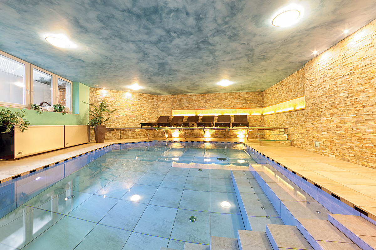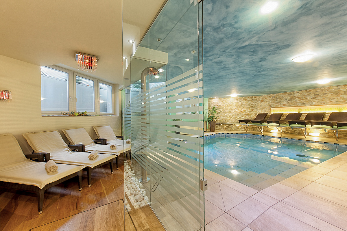 bazén 36 m² s vířivkou až pro 4 osoby a protiproudem, finská sauna#, biosauna#, pára#, infrakabina#, ledová tříšť#, emocionální sprcha#, relaxační koutek# s lehátky, masáže#*, kosmetické služby#*; služby označené # mohou využívat jen osoby od 16 let; v rámci relaxačního centra jsou zdarma nabízeny též bylinkové čaje