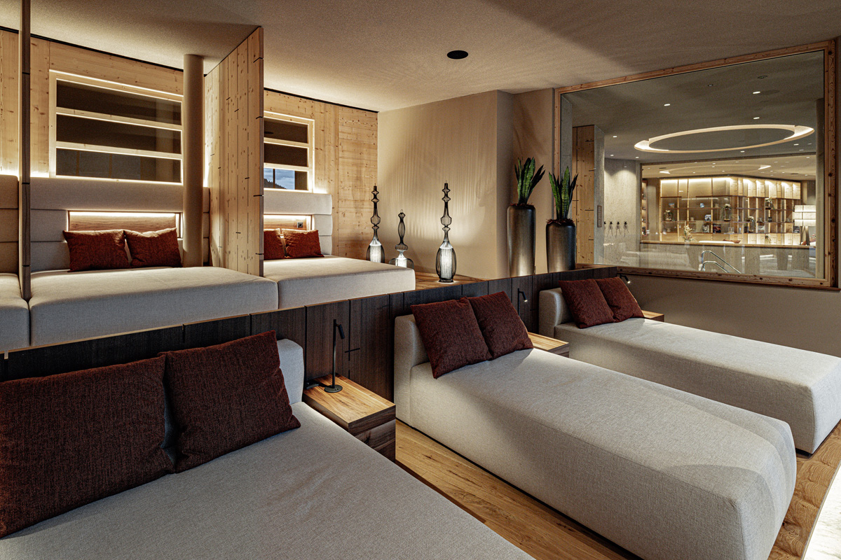 SPA pouze pro dospělé: vnitřní bazén, vnitřní a venkovní infiniti bazén, saunový svět (1 venkovní typu srub), velká relaxační zóna, masáže*, kosmetické služby*