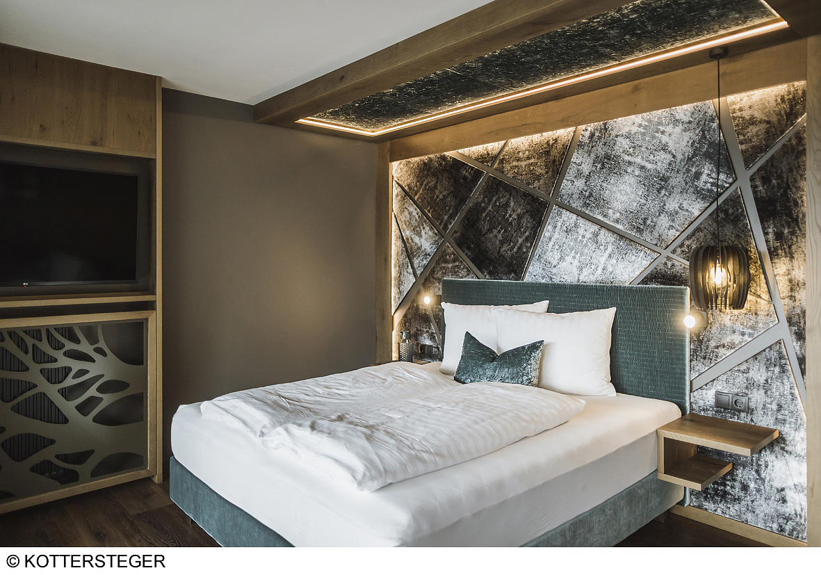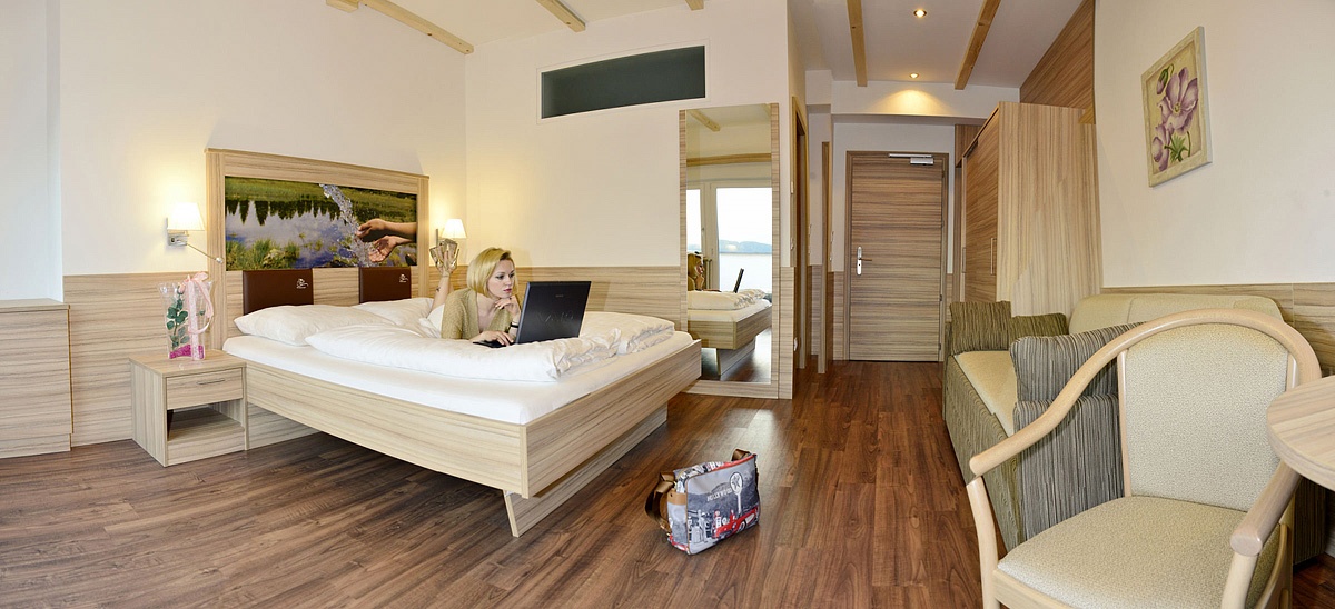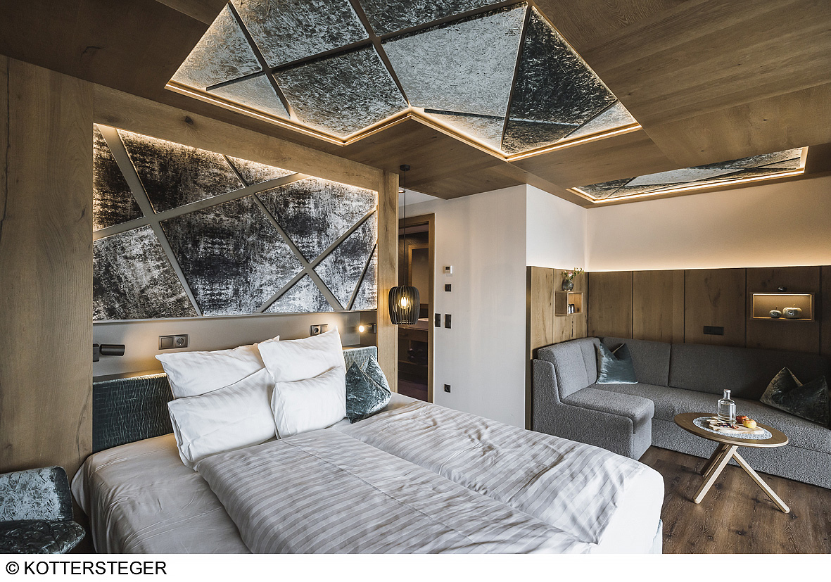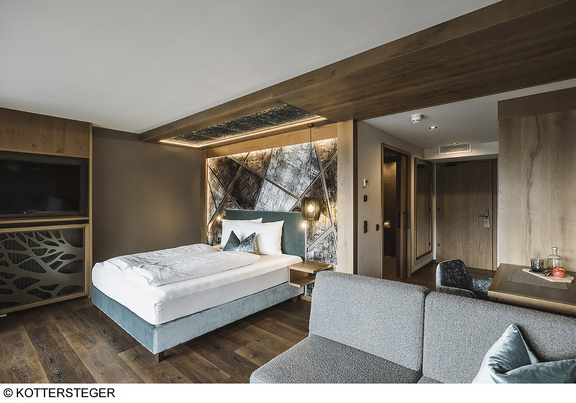 Junior Suite Alpenrose 2/3/4 - 24 m² - pokoj s manželskou postelí a rozkládacím gaučem pro 1 až 2 osoby, sociální zařízeni, balkon