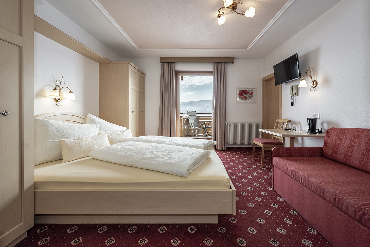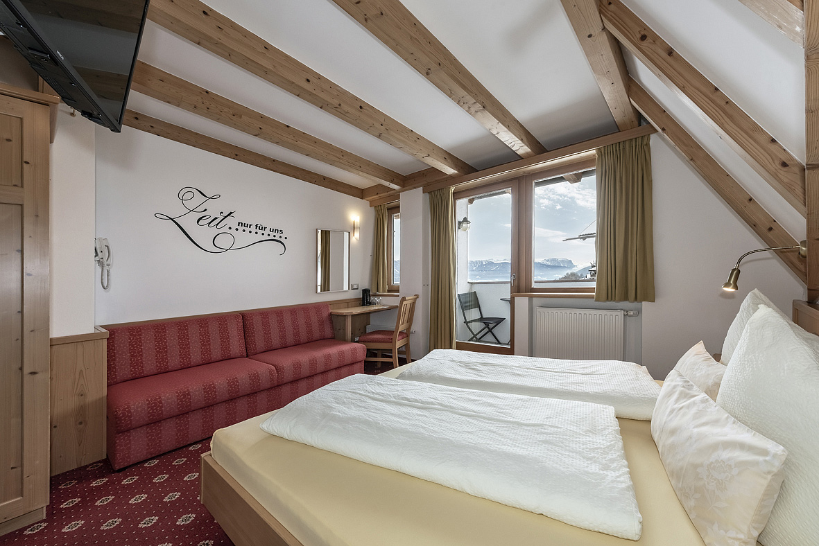 Dolomiten 2 - 18 m² - pokoj s manželskou postelí, sociální zařízení se sprchou či vanou, vždy balkon s panoramatickým výhledem na hory