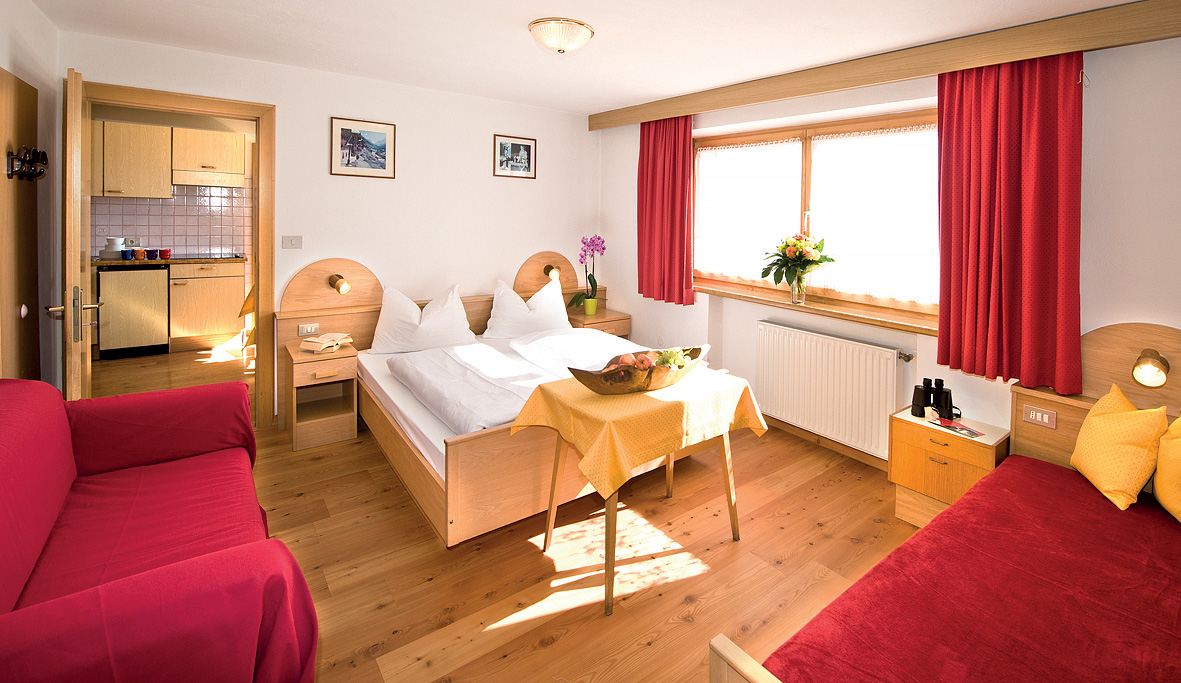 45 m² - 1 ložnice s manželskou postelí, 1 ložnice s manželskou postelí a 1 samostatným lůžkem, obývací pokoj s kuchyňským koutem a rozkládacím gaučem pro 1 osobu do nedovršených 16 let, sociální zařízení se sprchou či vanou, balkon; maximální obsazenost apartmánu je 5 dospělých osob a 1 dítě do nedovršených 16 let