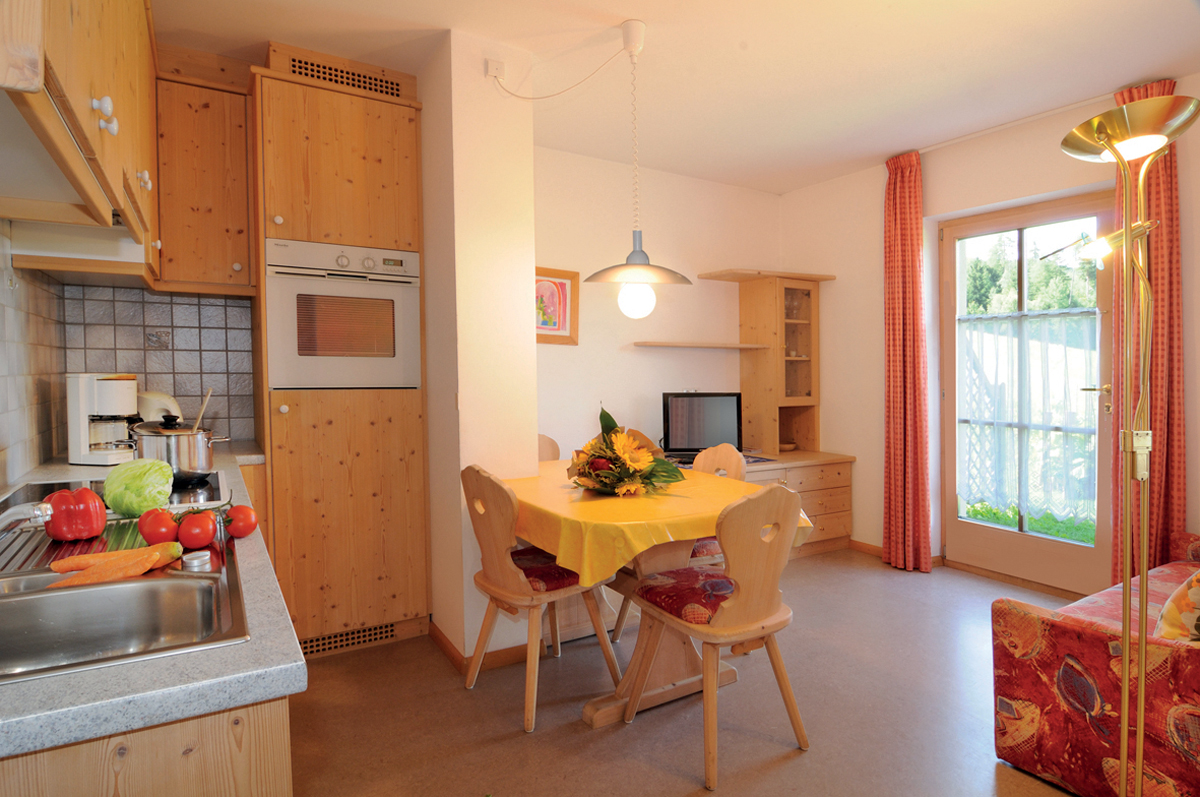 60 m² - ložnice s manželskou postelí, obývací pokoj s částečně odděleným kuchyňským koutem a rozkládacím gaučem pro 2 osoby, sociální zařízení se sprchou, terasa 8 m; na terase whirpool, lehátko a křesílko