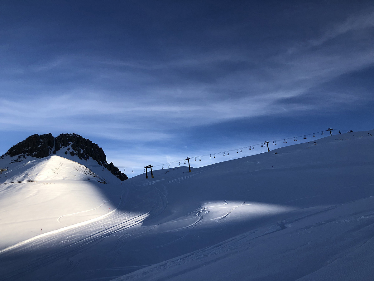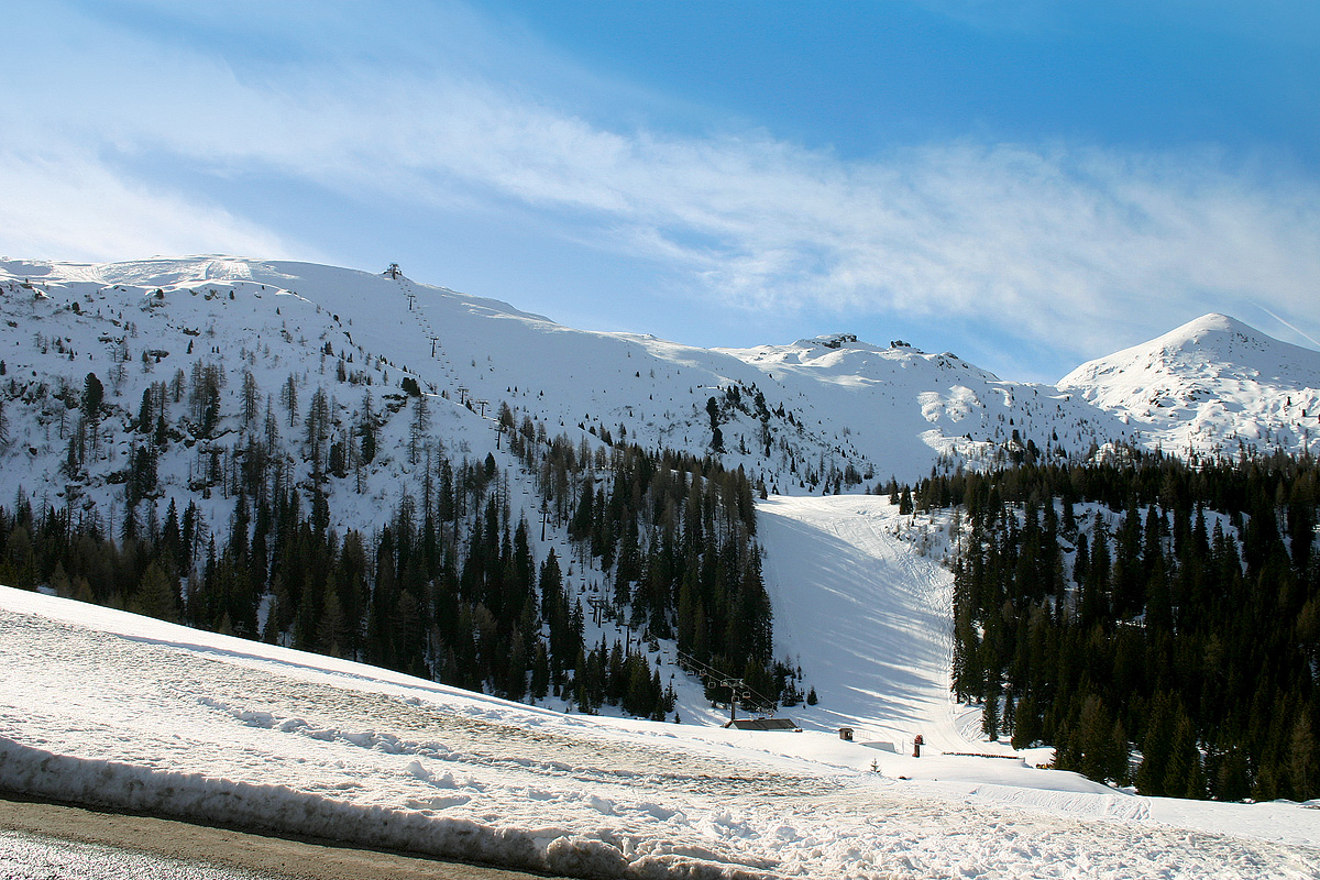 Nová červená sjezdovka Fantasia 2000 z vrcholu Cima Tognola (2 348 m) vede ke kabinové lanovce Tognola (1 411 m n. m.).