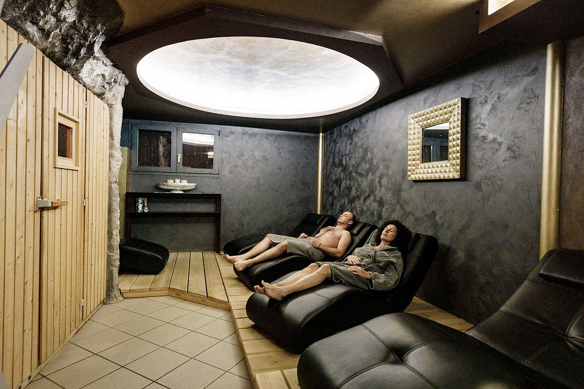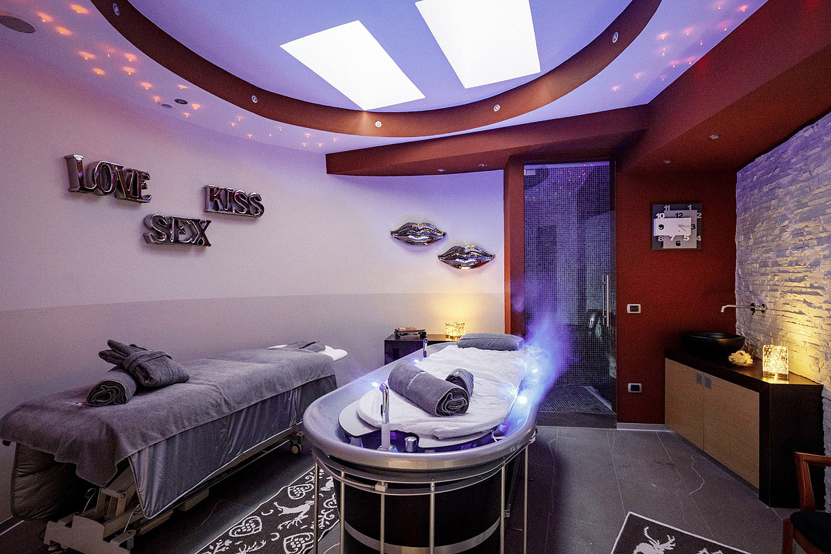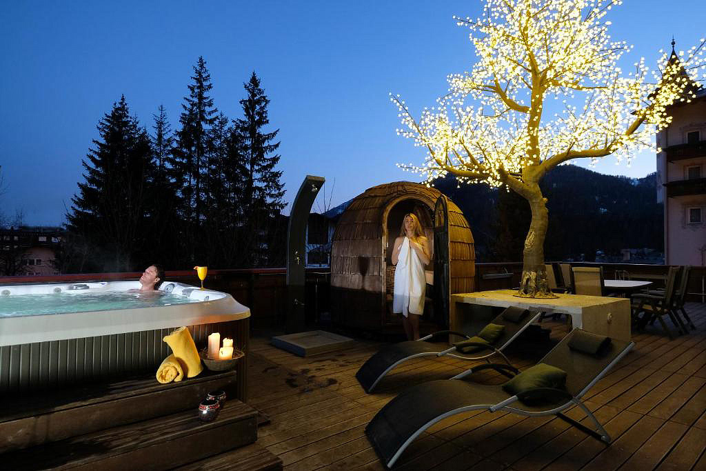 bazén s vířivkou, venkovní vířivka#, 2x sauna# (1x venkovní), pára#, relaxační koutek#, masáže*, menší posilovna#; služby označené # mohou využívat jen osoby od 16 let