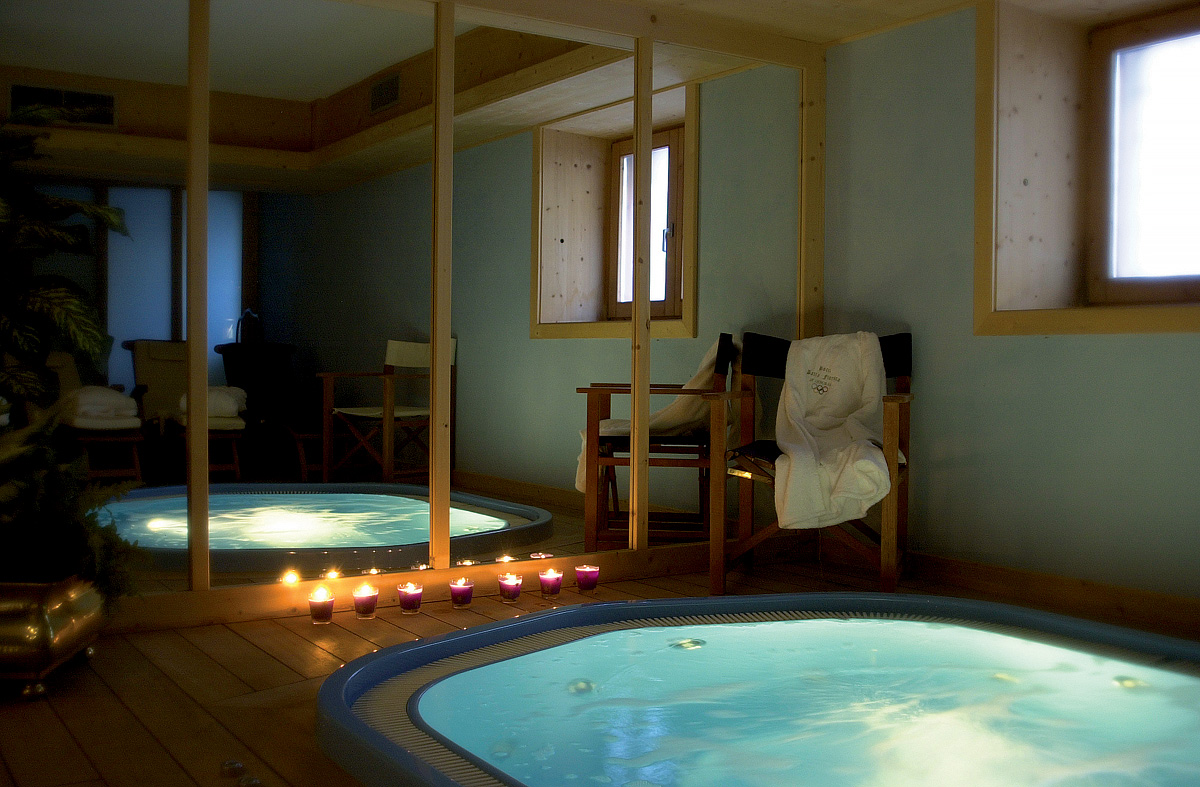 vířivka#, sauna#, pára#, relaxační koutek# s lehátky, masáže#*, kosmetické služby#*; služby označené # nemohou využívat děti do 15 let