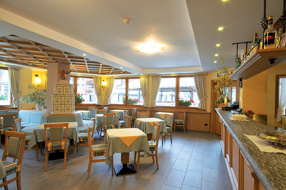 recepce / velká lobby s TV sat. / wi-fi připojení k internetu*, restaurace vyhrazená pro hotelové hosty, bar s pecí / wi-fi připojení k internetu*, taverna (s reprodukovanou hudbou; jen pro skupiny), sluneční terasa s posezením, úschovna lyží a lyžařských bot, výtah, veřejné parkoviště (ve vzdálenosti 100 m)