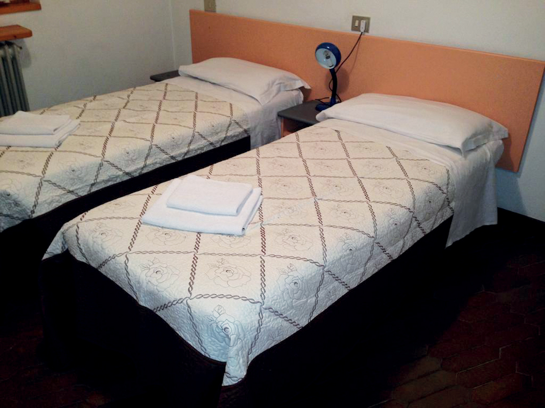 pokoj s manželským lůžkem nebo 2 samostatnými lůžky, sociální zařízení se sprchou či vanou, zřídka balkon