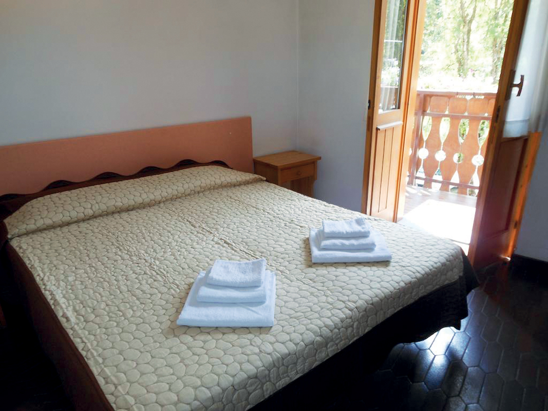 pokoj s manželským lůžkem nebo 2 samostatnými lůžky a palandou či 2 samostatnými lůžky, sociální zařízení se sprchou či vanou, zřídka balkon