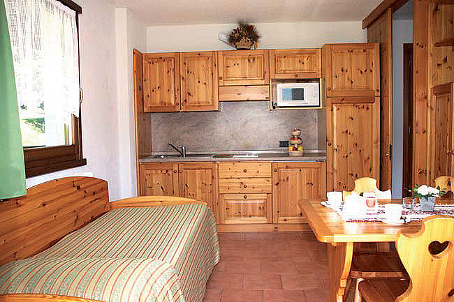 22 m² - 1 ložnice s manželskou postelí, obývací pokoj s kuchyňským koutem a rozkládacím gaučem typu "šuplík" pro 2 osoby, sociální zařízení, zpravidla balkon; apartmán jen pro 3 dospělé osoby a 1 dítě do nedovršených 12 let