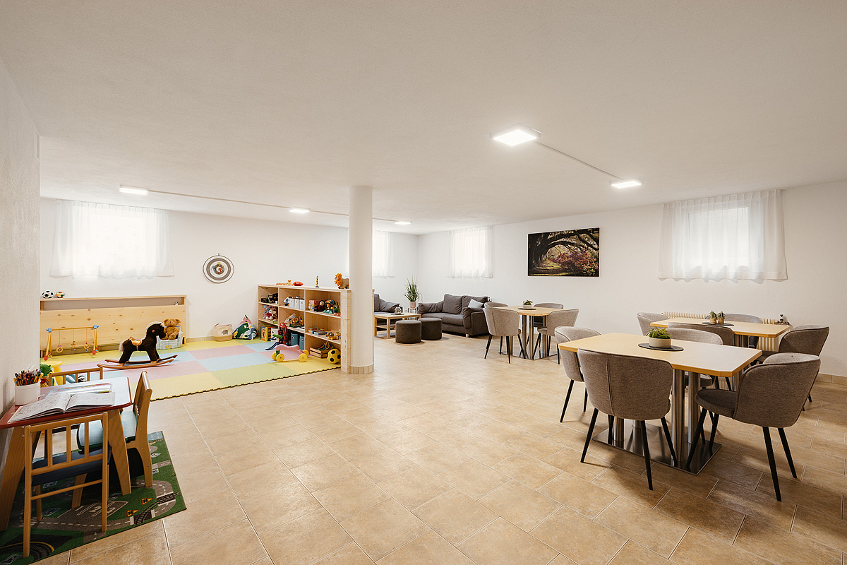 recepce, společenská místnost, velká zahrada, dětská herna, úschovna lyží a lyžařských bot, vyhrazené parkoviště, pračka, wi-fi připojení k internetu