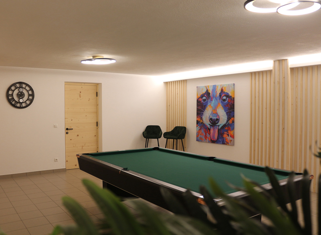 recepce, společenská místnost, velká zahrada, dětská herna, úschovna lyží a lyžařských bot, vyhrazené parkoviště, pračka, wi-fi připojení k internetu