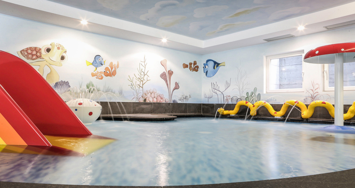 bazén 15 x 10 m s vířivkou, dětský bazén se skluzavkou, vířivka až pro 5 osob, finská sauna#, biosauna#, senná sauna#, pára#, infrakabina#, relaxační koutek s lehátky#, Kneippův chodník#;