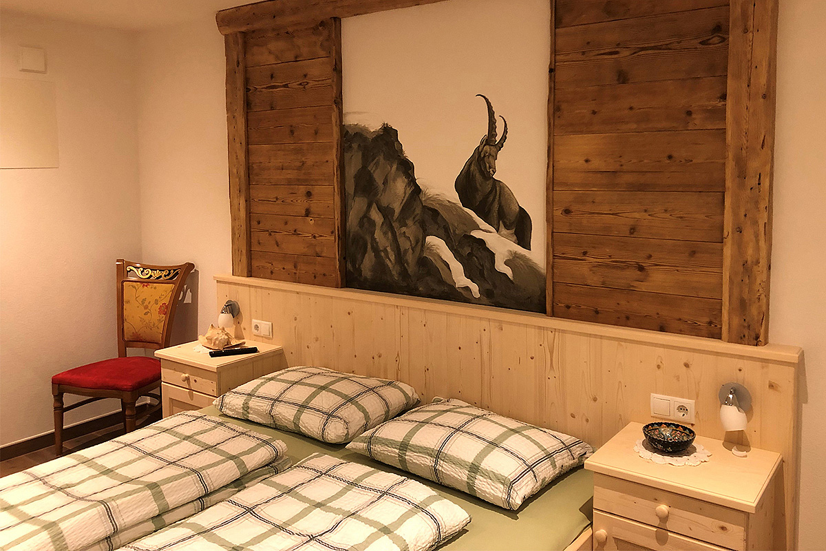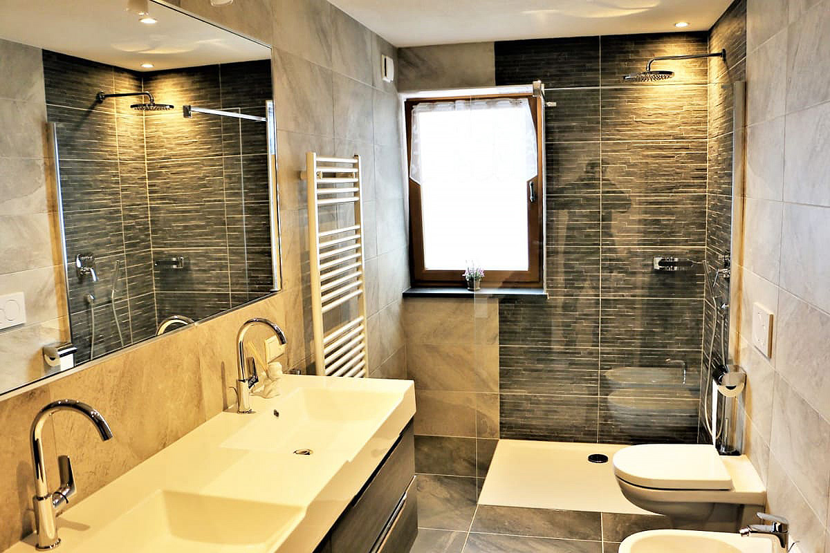 quadrilo 6 Cima Bianca - 100 m² - 1 ložnice s manželskou postelí, 1 ložnice s manželskou postelí a rozkládacím gaučem pro 2 osoby, obývací pokoj s krbem, samostatná kuchyň, 2x sociální zařízení, terasa