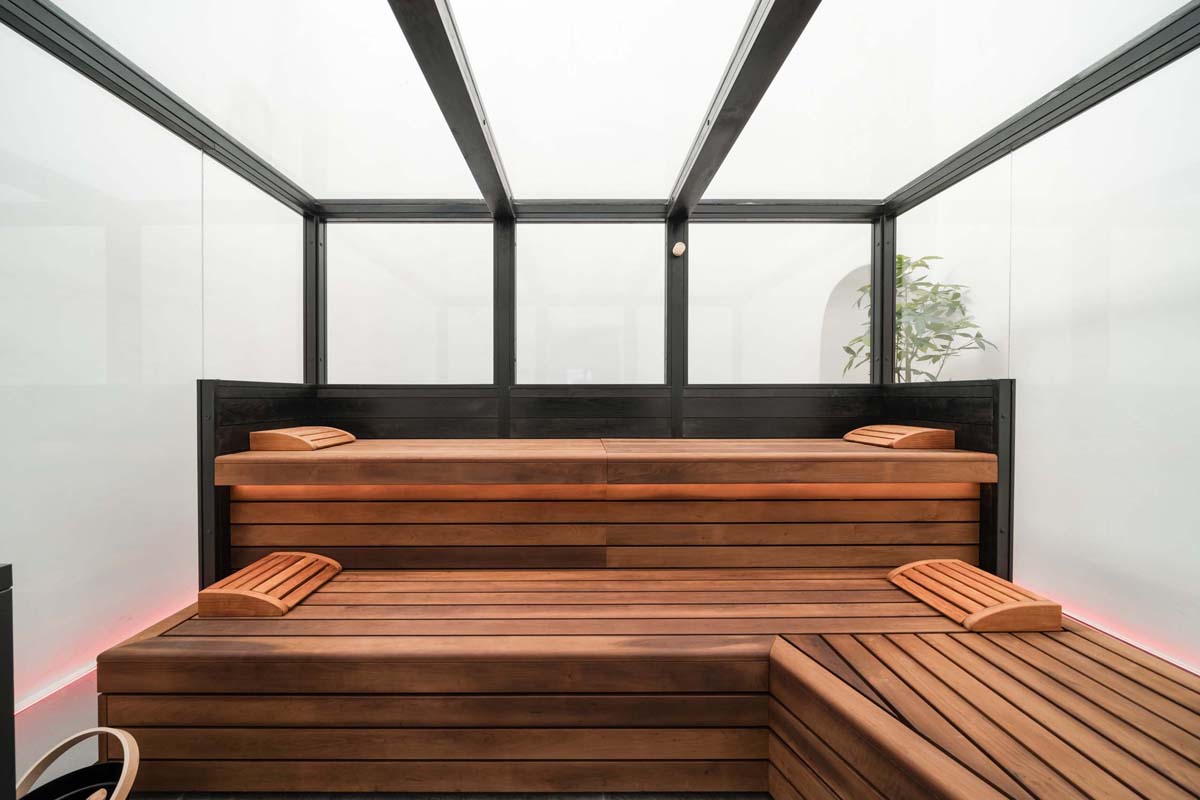 finská sauna#, pára#, relaxační koutek# s lehátky, posilovna; služby označené # mohou využívat osoby od 16 let