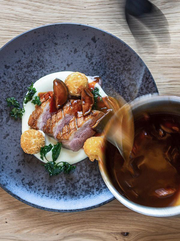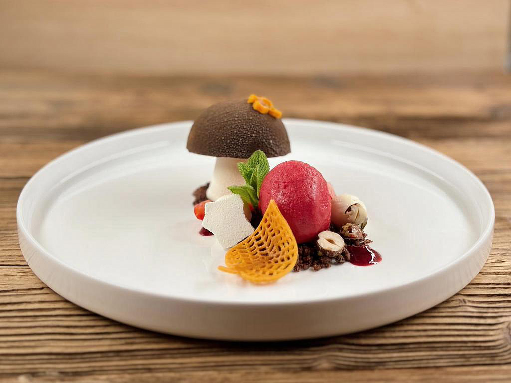 servírované menu s výběrem ze 2 teplých předkrmů, 2 hlavních jídel s přílohou, servírovaný dezert, salátový bufet, nápoje za poplatek