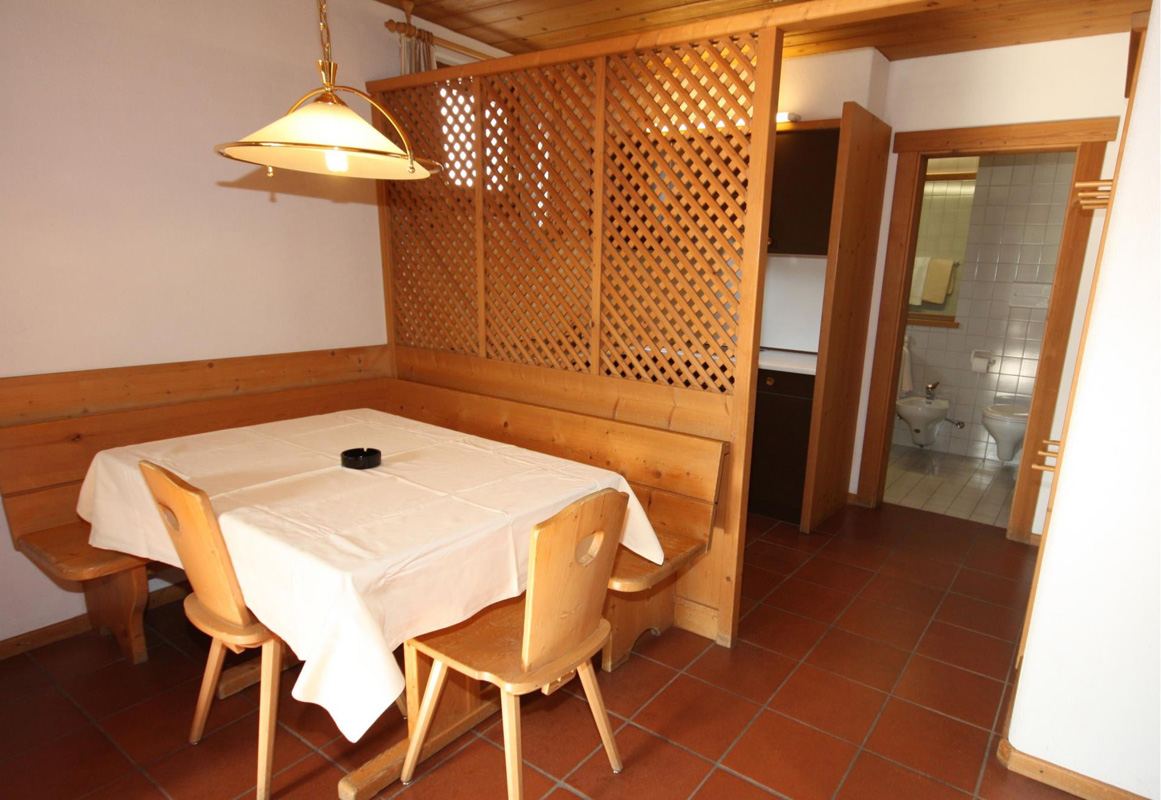 obývací pokoj s kuchyňským koutem a manželskou postelí o velikosti 140 cm, sociální zařízení s vanou, balkon či terasa; maximální obsazenost apartmánu je 1 dospělá osoba a 1 dítě do nedovršených 16 let