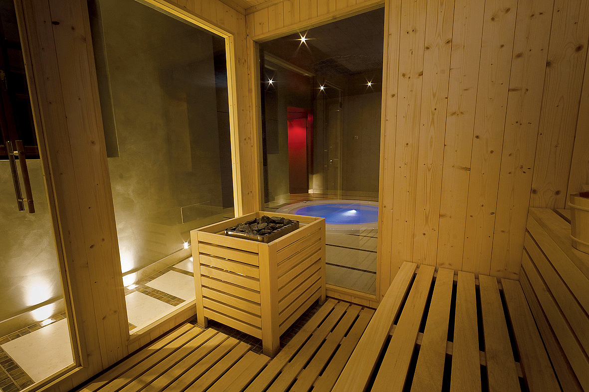 vířivka* až pro 6 osob, sauna*, pára*, 2x multifunkční sprcha*, relaxační koutek* s lehátky, masáže*, kosmetické služby*