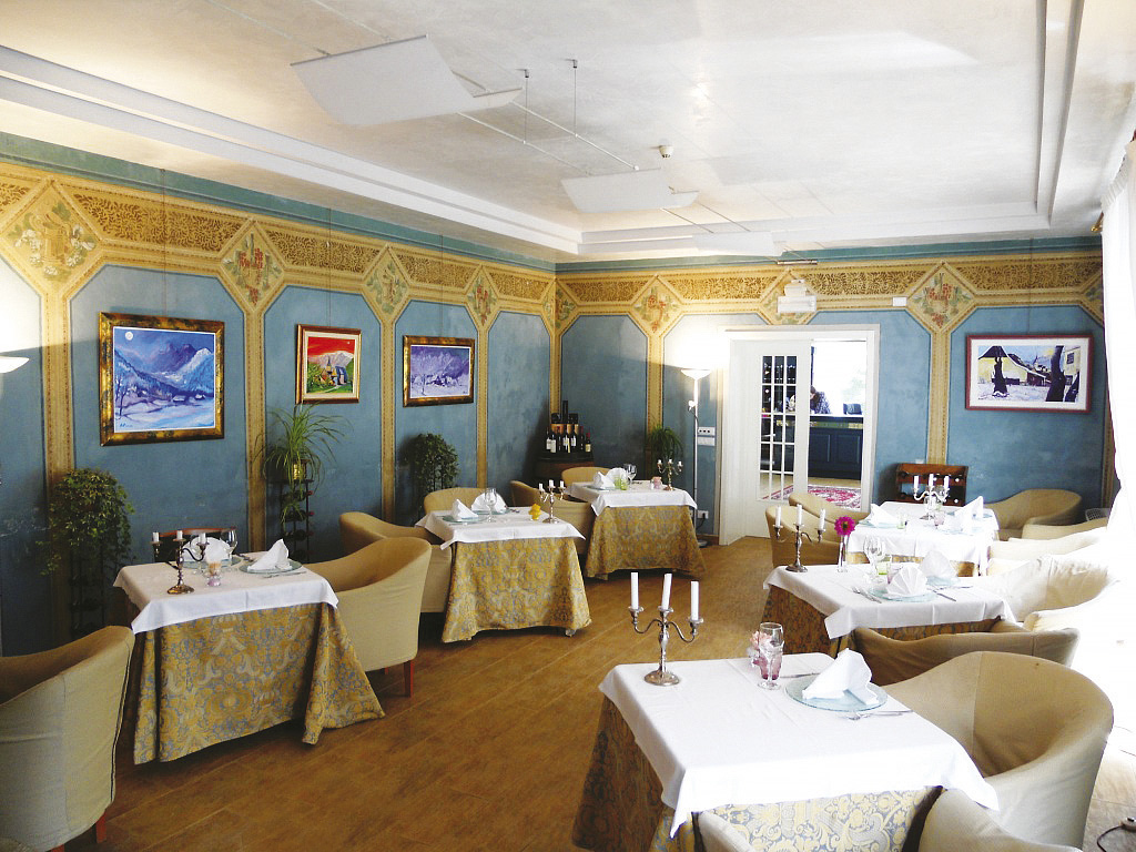 servírované menu s výběrem ze 3 teplých předkrmů a 3 hlavních jídel s přílohou, salátový bufet, servírovaný dezert či ovoce, nápoje za poplatek