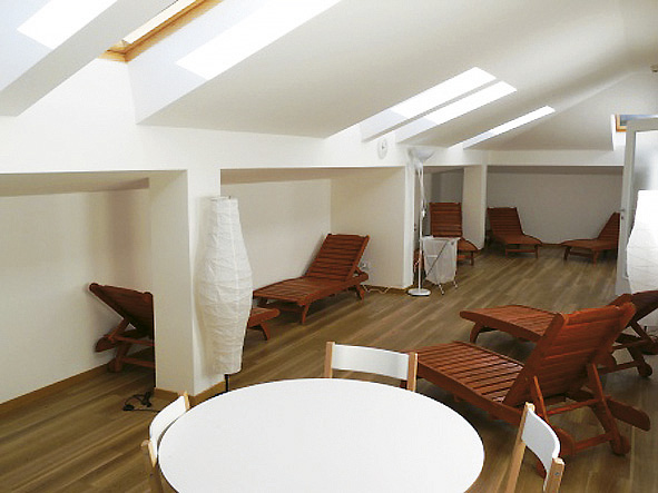 sauna*, relaxační koutek* s lehátky, malá posilovna
