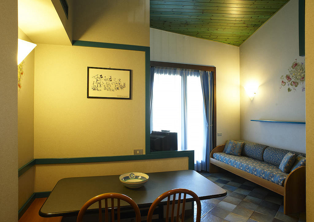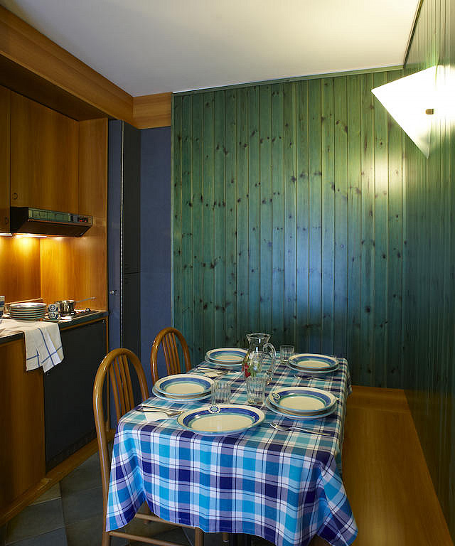 mono 3/4 - 30 m² / mono 3, 32 m² / mono 4 - malý obývací pokoj s kuchyňským koutem a gaučem pro 1 osobu či rozkládacím gaučem pro 2 osoby (možno i typ "šuplík"), neuzavřené podkrovní 2. podlaží apartmánu s manželskou postelí, sociální zařízení, zřídka balkon