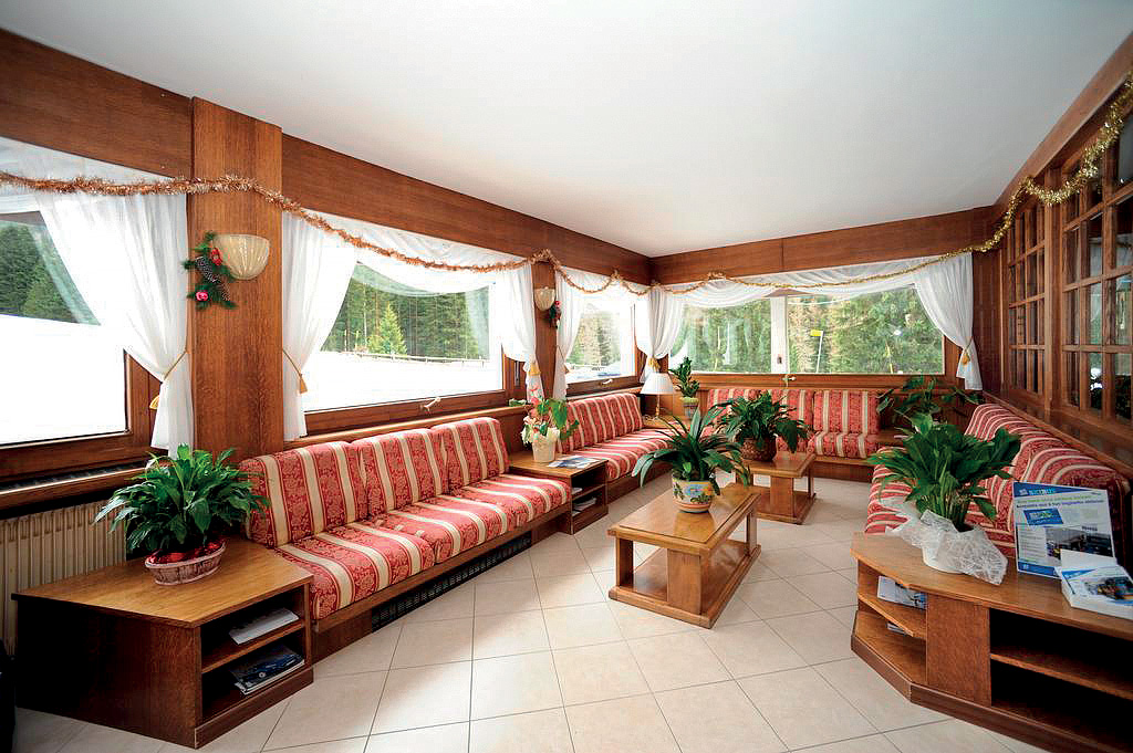 recepce / menší lobby / bar / wi-fi připojení k internetu, restaurace vyhrazená pro hotelové hosty, televizní místnost, společenská místnost, sluneční terasa, dětský koutek, úschovna lyží a lyžařských bot, výtah, vyhrazené parkoviště (počet míst omezen), služby hotelové prádelny*