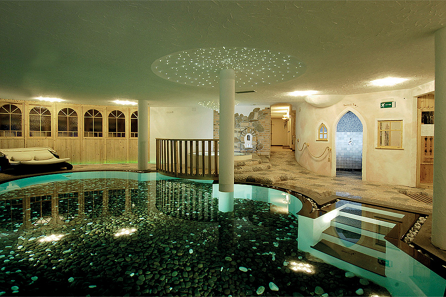 bazén 20 m², vířivka# až pro 6 osob, sauna#, pára#, 2x multifunkční sprcha#, relaxační koutek# s lehátky, kneippův chodník#, masáže*, kosmetické služby*; služby označené # mohou využívat jen osoby od 16 let