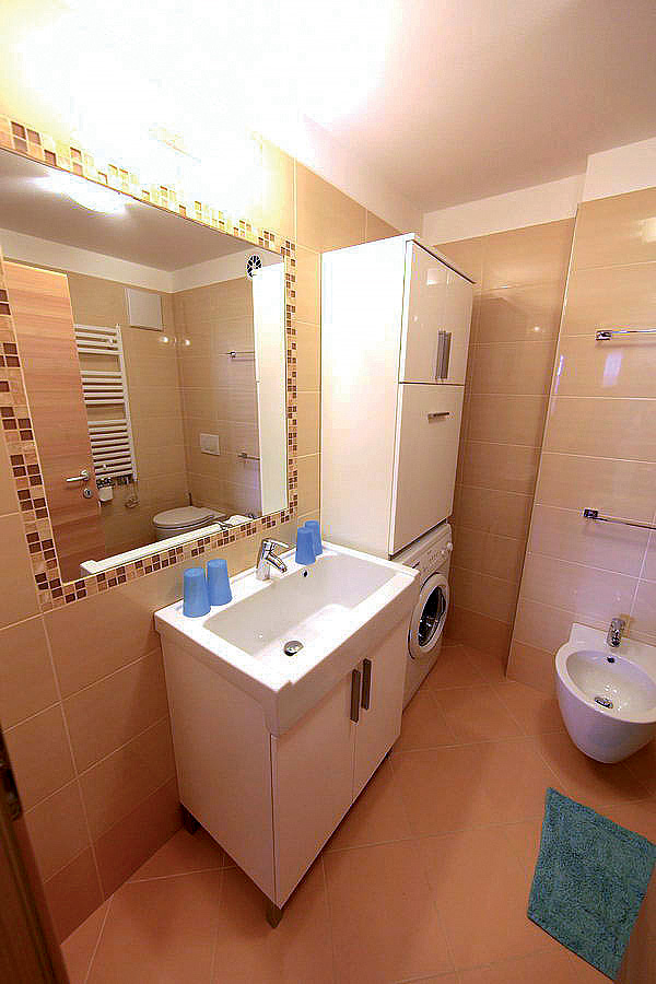 55 m² - 1 ložnice s manželskou postelí, 1 ložnice s palandou, obývací pokoj s kuchyňským koutem a rozkládacím gaučem pro 1 osobu (vhodné pro dítě do nedovršených 12 let), sociální zařízení, 2x balkon