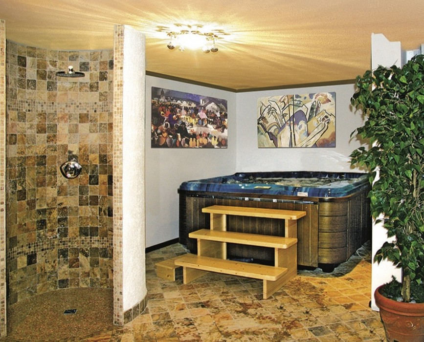 vířivka* až pro 4 osoby, bio sauna*, pára*, posilovací stroje*