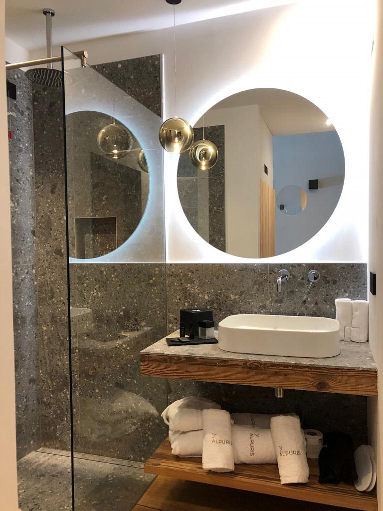 41 m² - pokoj s manželskou postelí a případně 1 samostatným lůžkem či rozkládacím gaučem na lůžko pro 1 osobu, privátní vířivka či sauna, sociální zařízení, balkon