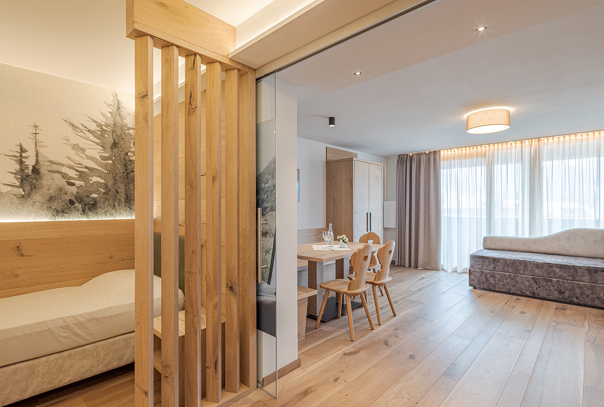 další typy pokojů - za příplatek lze objednat další nadstandardní pokoje Living Family Suite 4/5/6, Junior Suite La Pieve 2/3/4 a Spa Suite 2/3/4 (až 60 m² se 2 sociálními zařízeními, oddělenými pokoji, bio saunou…)