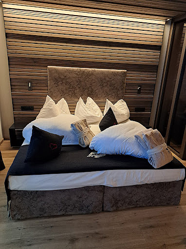 Suite Luna Piena 2/3/4/5 - 34 m² - pokoj s manželskou postelí a případně 1 samostatným lůžkem či rozkládacím křeslem na lůžko, pokoj se 2 samostatnými lůžky či rozkládacím gaučem pro 2 osoby, sociální zařízení se sprchou či vanou, balkon