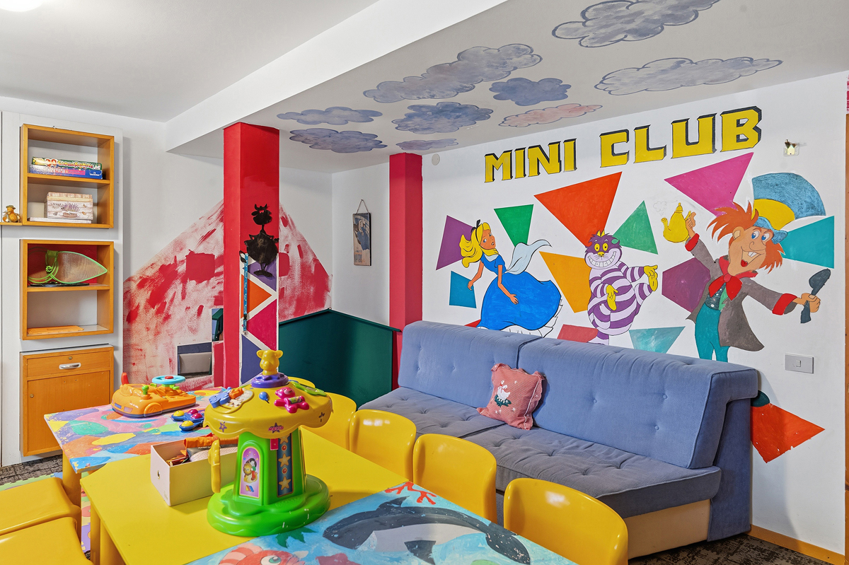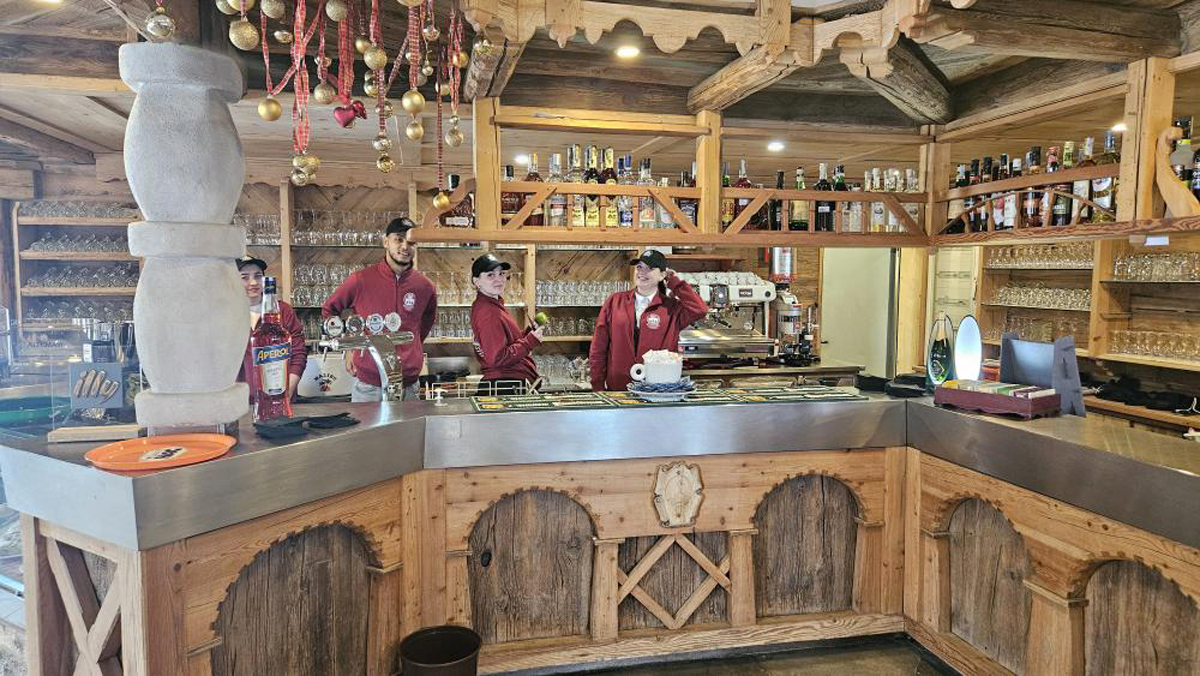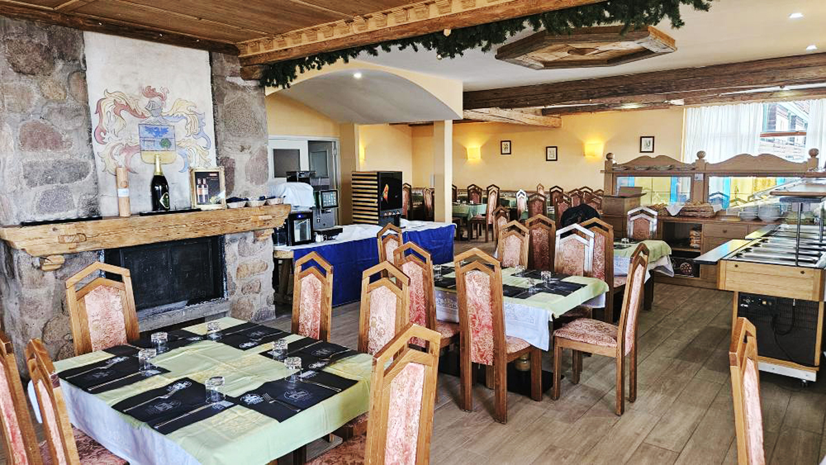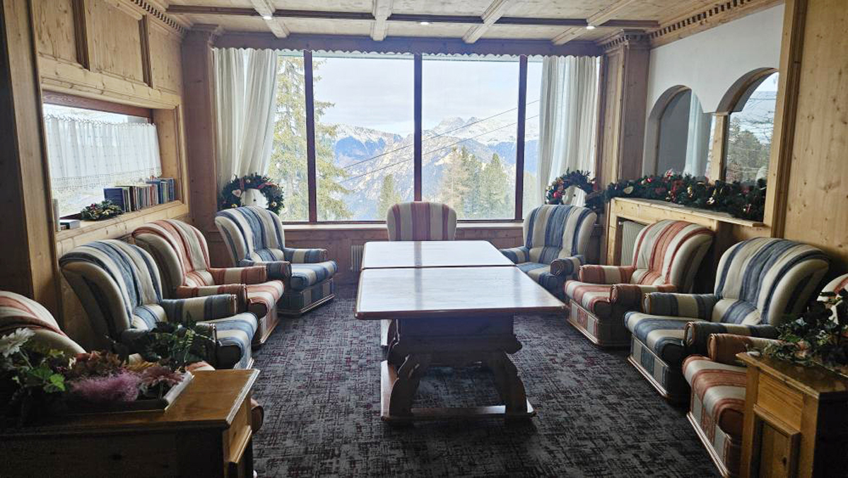 recepce / menší lobby s krbem / bar, restaurace / pizzerie self servis na svahu jen na obědy, restaurace, venkovní après ski bar u sjezdovky se sluneční terasou a lehátky, společenská místnost s TV sat., menší sluneční terasa s lehátky, dětský koutek, hotelový trezor