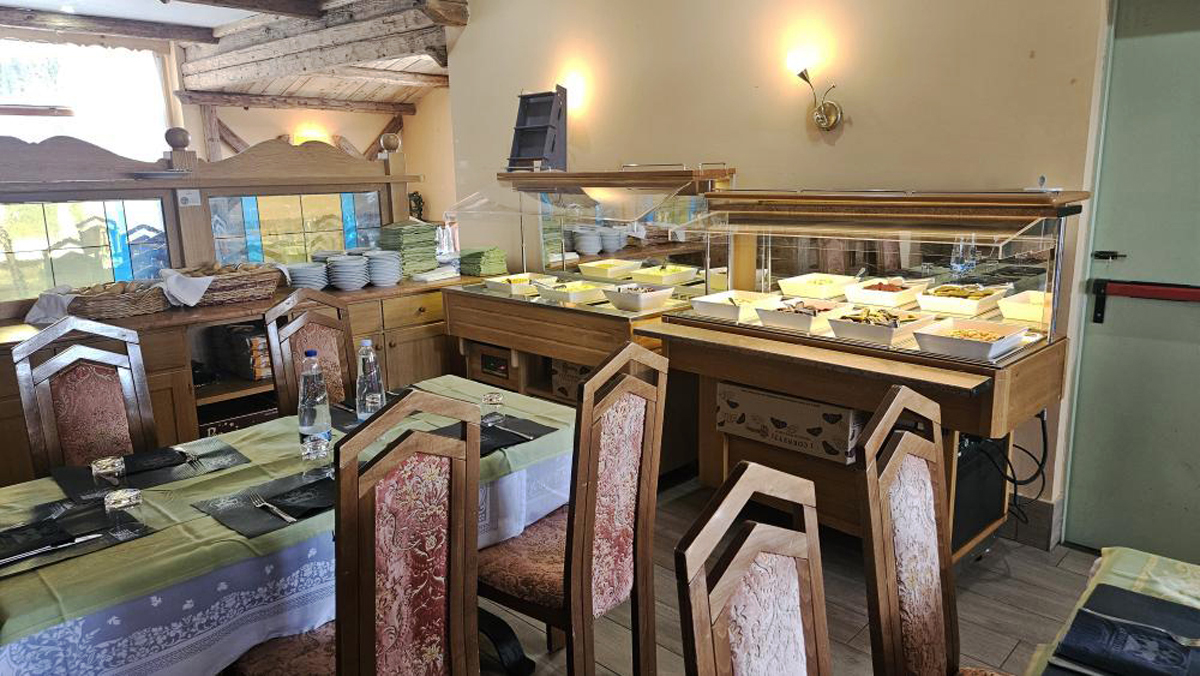 servírované menu s výběrem ze 2 teplých předkrmů a 2 hlavních jídel s přílohou, studené předkrmy formou bufetu, salátový bufet, servírovaný dezert či ovoce, nápoje za poplatek