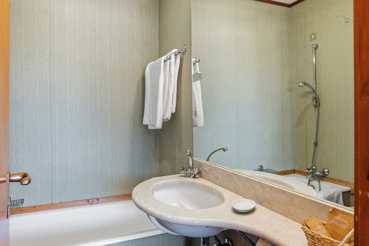 pokoj se samostatným lůžkem či s manželskou postelí a případně rozkládací gauč na lůžko, sociální zařízení se sprchou či vanou, balkon (s výjimkou jednolůžkových pokojů)