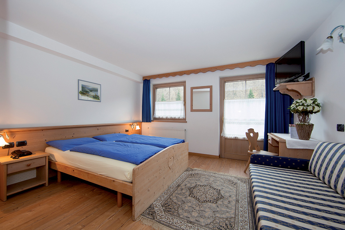 Standard 2/3/4 - 21 m² - pokoj s manželskou postelí či 2 samostatnými lůžky a případně 1 či 2 dalšími samostatnými lůžky či rozkládacím gaučem pro 2 osoby, sociální zařízení, balkon