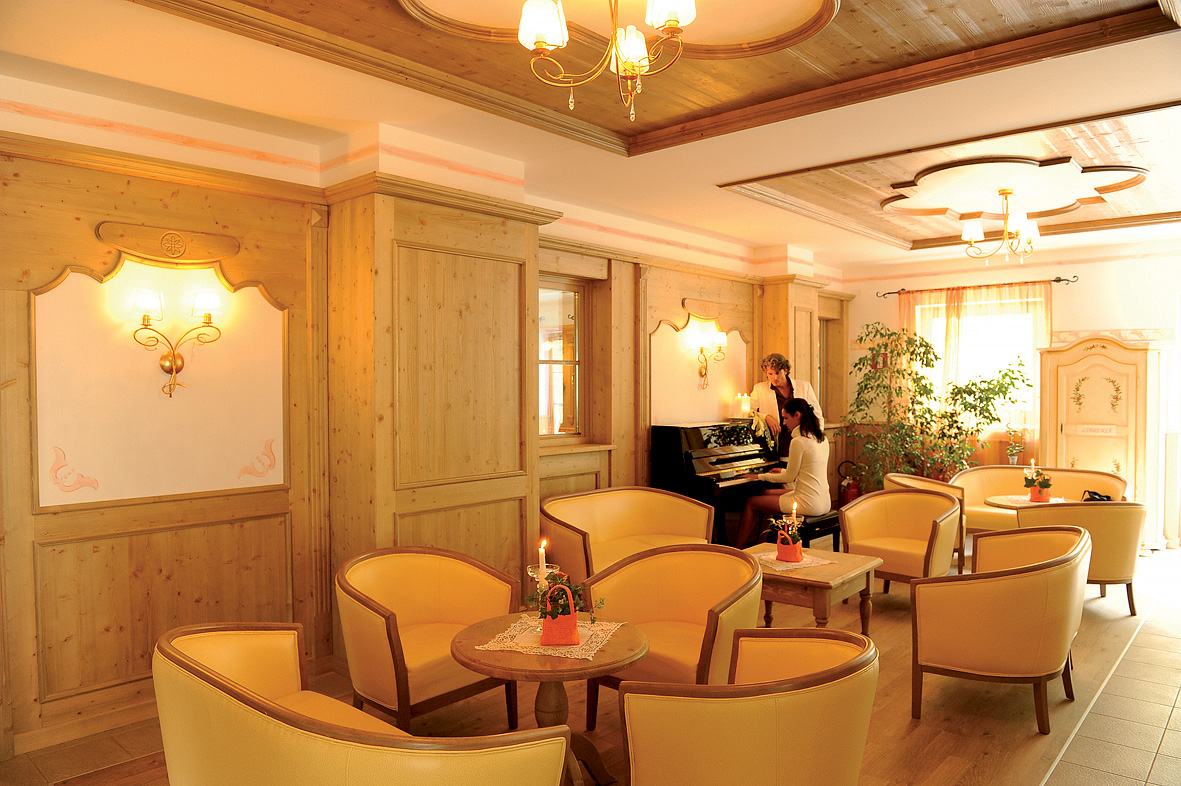 recepce / lobby / bar, jídelna pro snídaně, taverna, společenská místnost / wi-fi připojení k internetu, společenská místnost s pianem, dětský koutek s hřištěm, úschovna lyží a lyžařských bot, výtah, vyhrazené parkoviště, garážová stání*, hotelový miniskibus