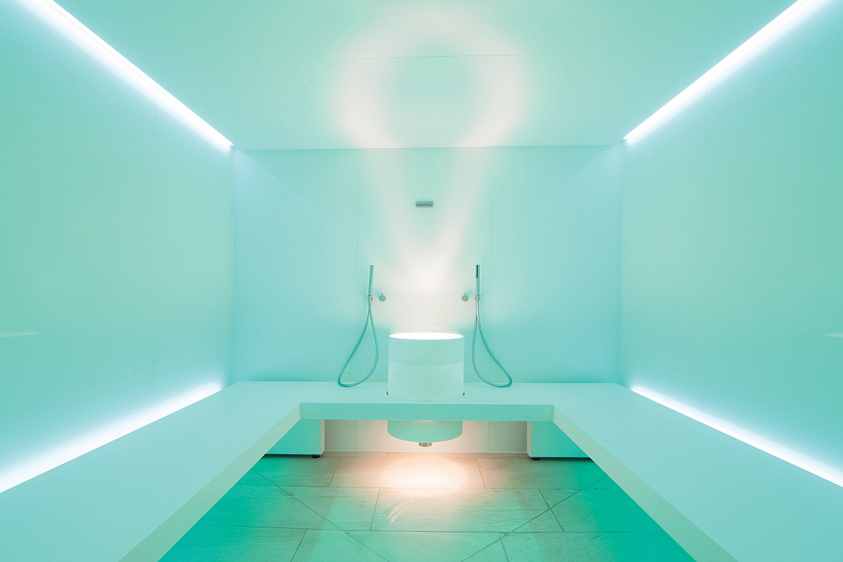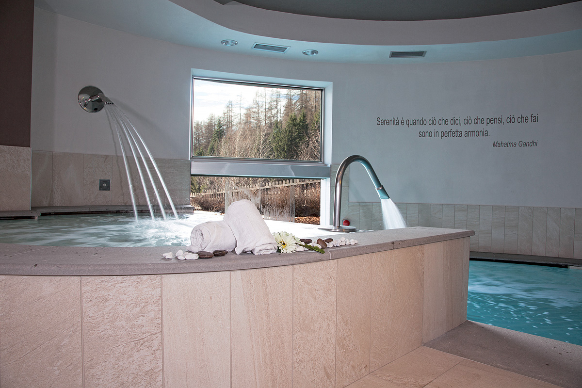 bazén atypického tvaru s dětským bazénkem, venkovní vyhřívaný bazén, vířivka až pro 8 osob, venkovní vířivka až pro 8 osob, sauna, bio sauna, sauna, aromatická pára, ledová lázeň, 2x multifunkční sprcha, vertikální solárium*, relaxační koutek s lehátky, masáže*, posilovna, biliár*, stolní tenis, stolní fotbal