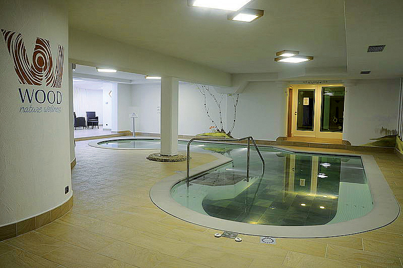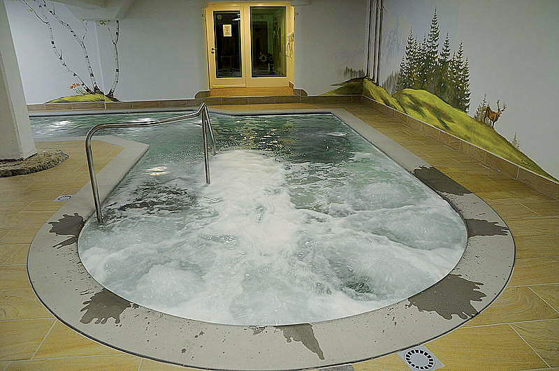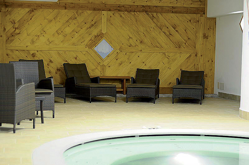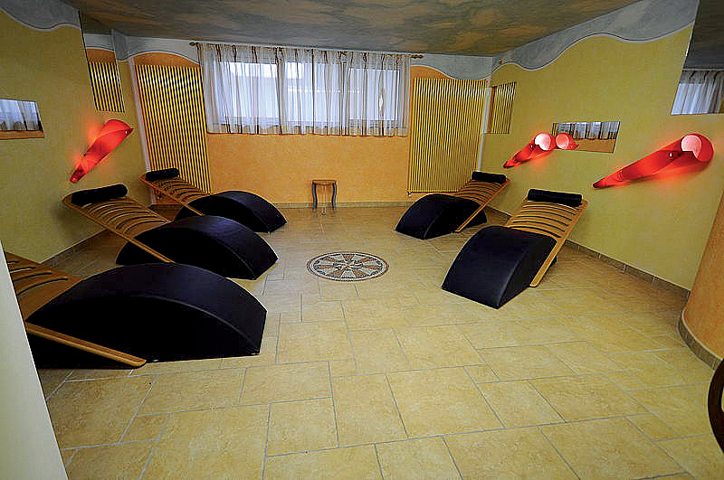 bazén 40 m² s vířivkou až pro 8 osob, sauna, pára, horizontální solárium*, relaxační koutek s lehátky