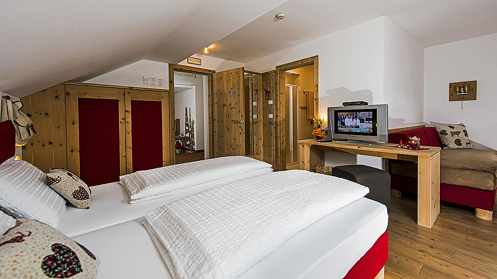 25 až 32 m² - pokoj s manželskou postelí a případně rozkládacím gaučem na lůžko pro 1 či 2 osoby, sociální zařízení se sprchou, balkon