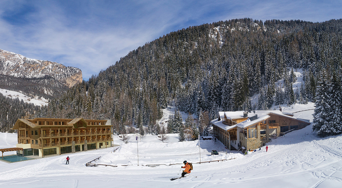 Selva Gardena, centrum – 1,8 km, skiareál Ciampinoi / Sella Ronda - 100 m, skibus – 350 m; za dobrých sněhových podmínek příjezd na lyžích až k hotelu